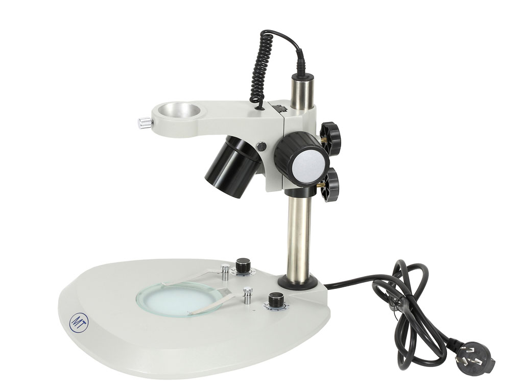 型號名稱:SD8-D底座組 說明: ● 鏡架內置可調角度、可調亮度6V/10W帶反光杯鹵素上光入射照明光源 ● 底座內置110V或220V/5W熒光燈下光透射照明 ● 可單獨使用或者同時使用上光源或下光源照明,分離式各種插頭電源線 ● 鏡體安裝孔直徑Φ45mm ● 方立柱調焦范圍100mm ● 中心工作臺直徑Φ95mm
