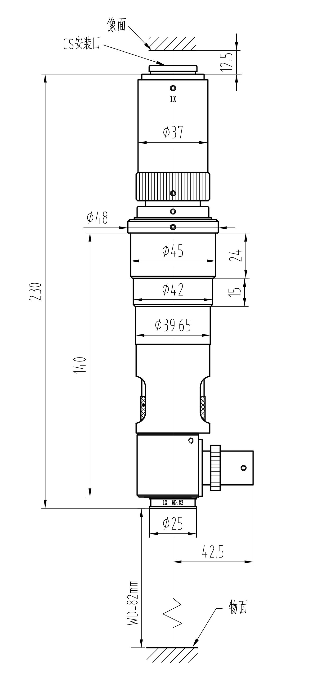 安裝尺寸:Φ45mm 最大兼容相機:1/2" CCD螺紋接口:1英吋32扣