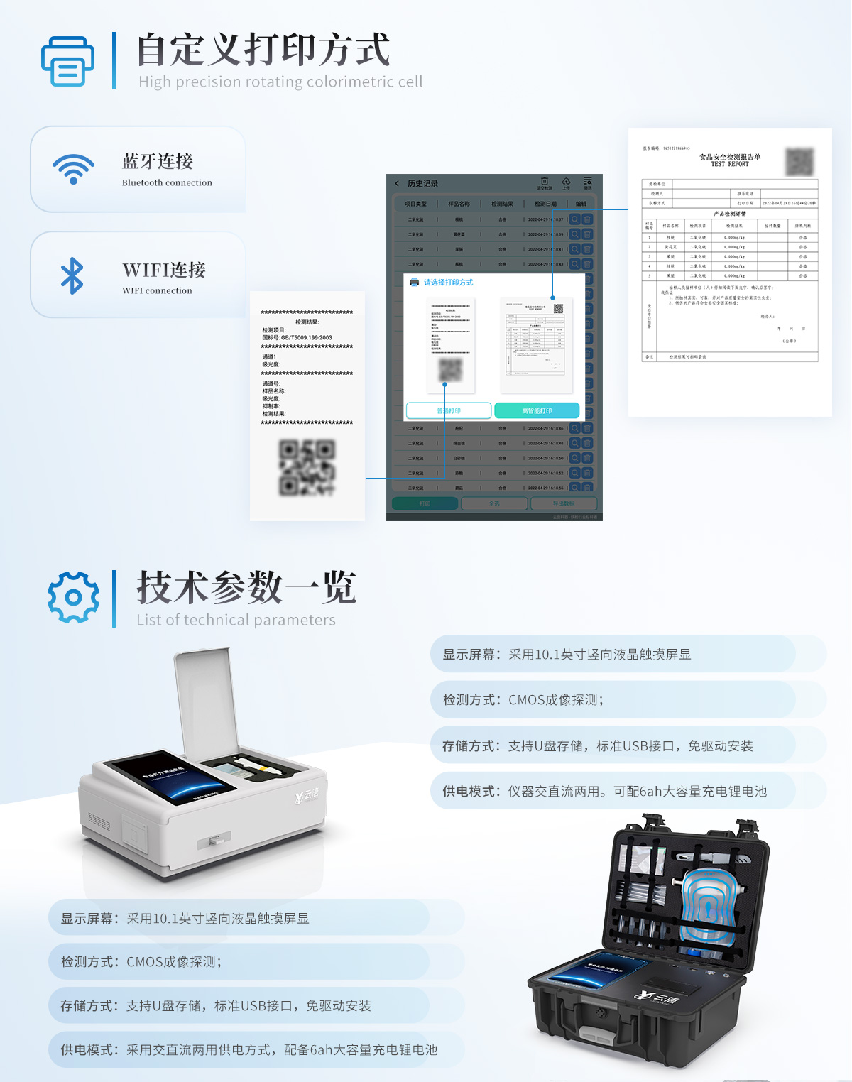 9、A4紙版本報(bào)告打印功能(可選配):設(shè)備擁有兩種結(jié)果展示方式,可以自動生成A4打印模板和小票打印模板兩種樣式,可通過WiFi及網(wǎng)線等方式鏈接外置打印機(jī)可進(jìn)行打印